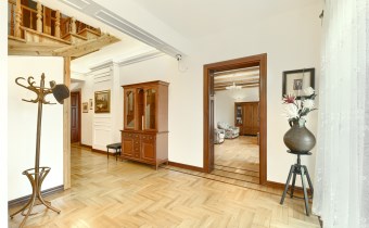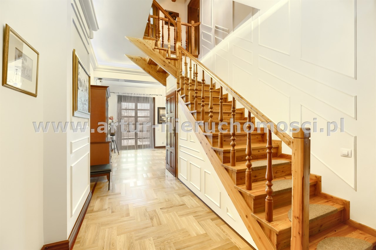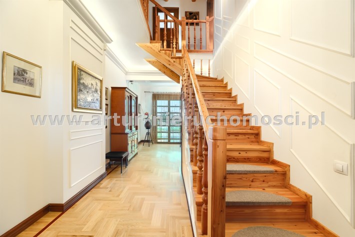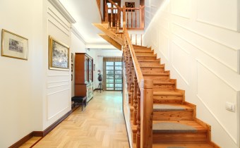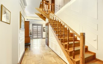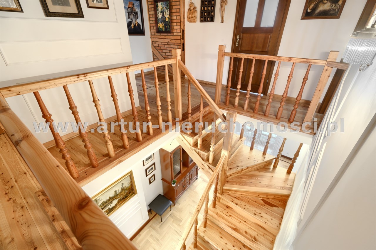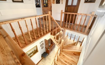 - Piękne drewniane schody wykonane na zamówienie, prowadzące z holu na piętro