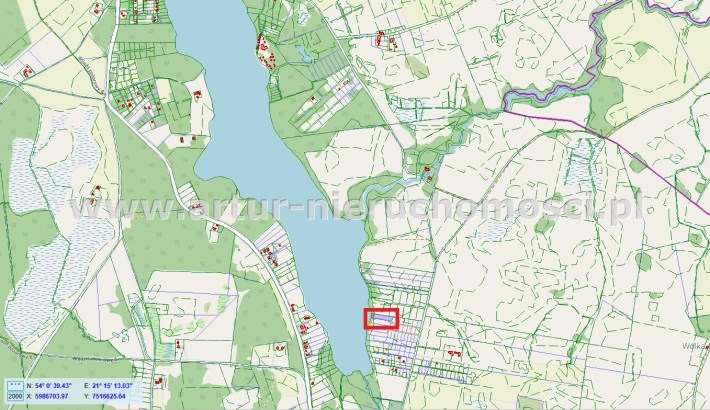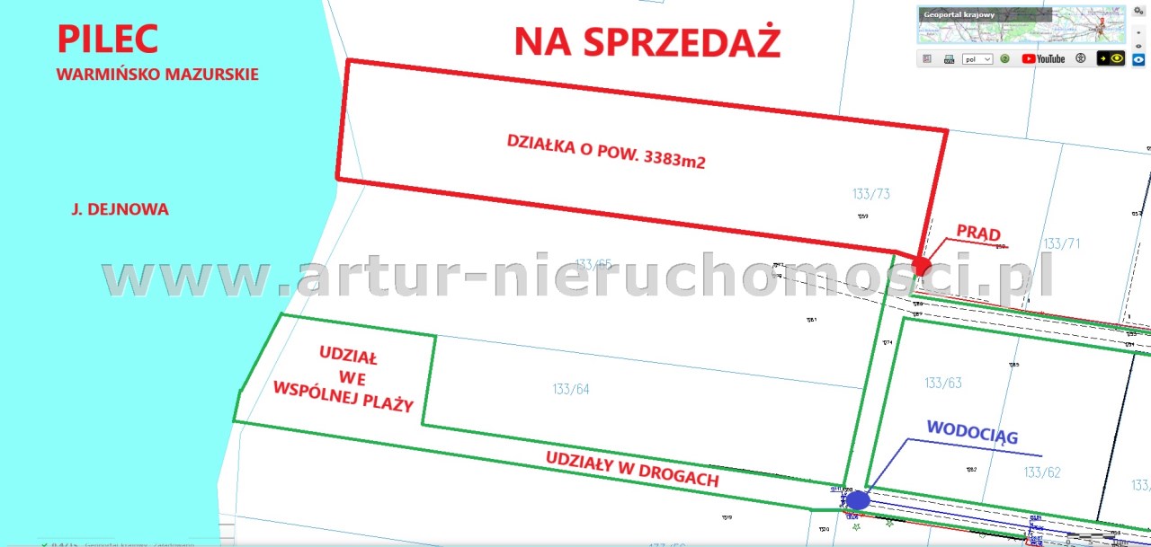 Sprzedam działkę rekreacyjną o powierzchni 3383 m² z własną linią brzegową, położoną w miejscowości Pilec nad jeziorem Dejnowa.